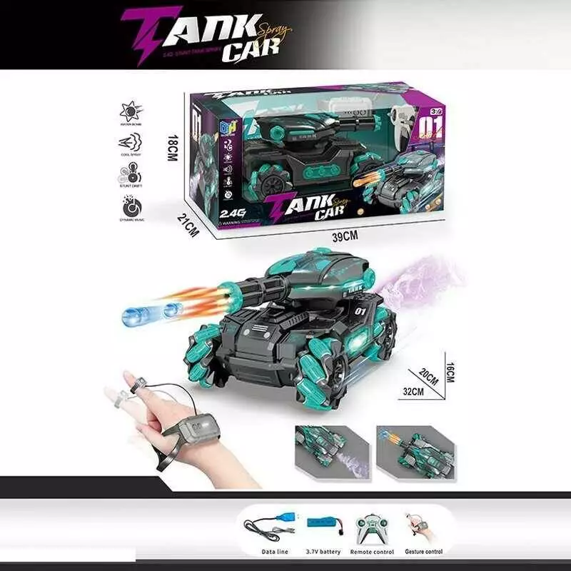 Танк на радіокеруванні DH 666-20 B (16/2) світло, звук, стріляє орбізами, парогенератор, оберти на 360°, браслет/пульт 2.4GHz, акум. 3.7V, в коробці