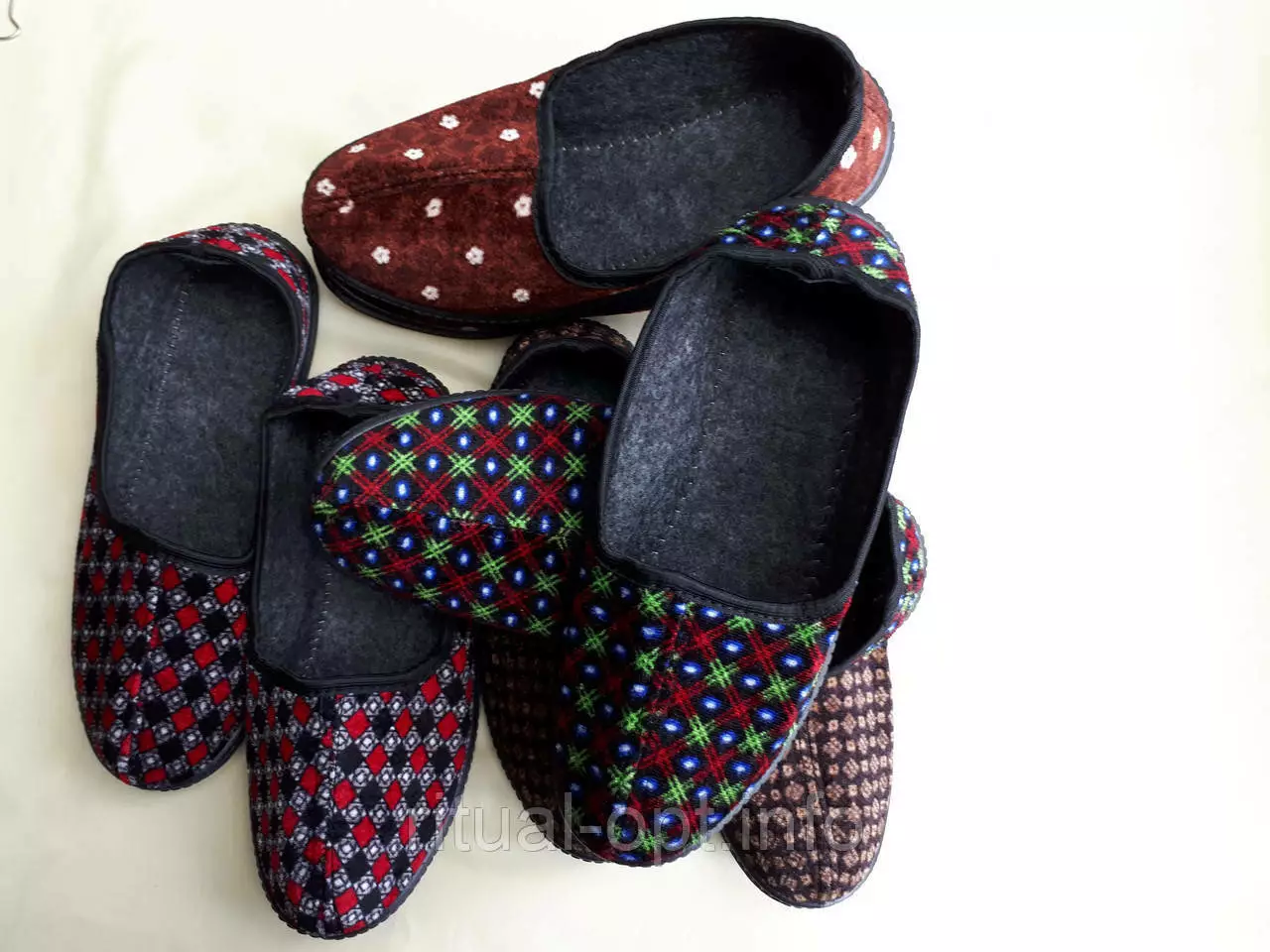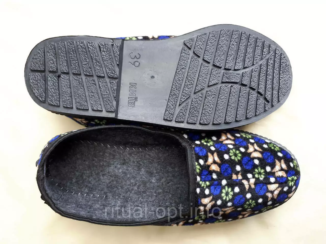 Тапки жіночі темні.Верх якісна тканина,підошва гума.Виробник