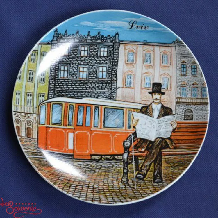 Тарілка сувенірна - серія "Львівська пристрасть" ("Пан з газетою")