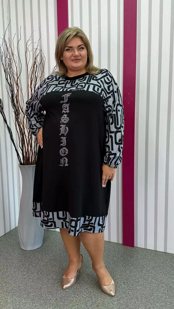 Сукня прямого силуету з трикотажу мікро дайвінг з начісуванням, розтяжність дуже хороша. Комбіновано із фрунцузьким трикотажем. Кишені в бічних швах, прикрашені якісним каменевим накатом.