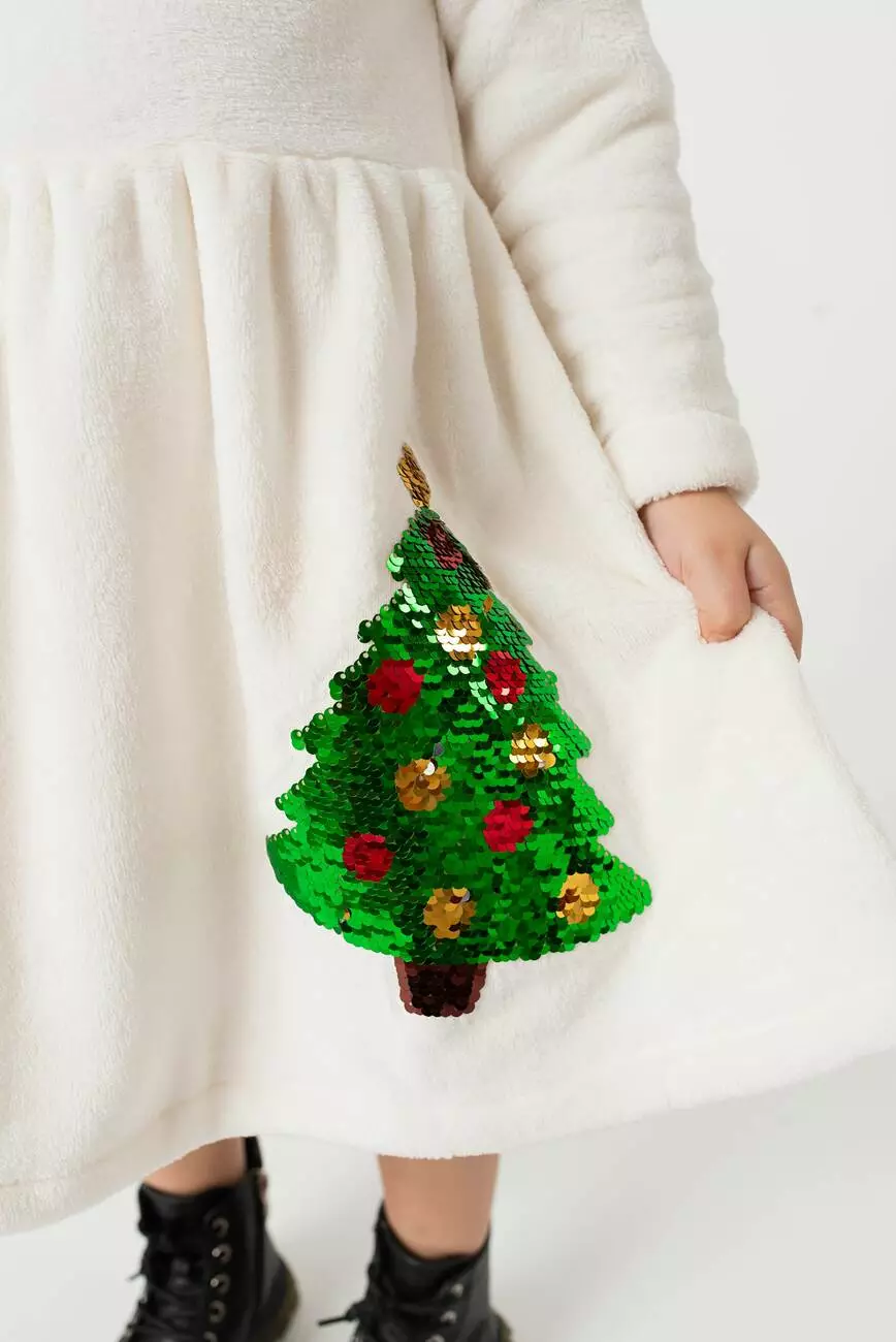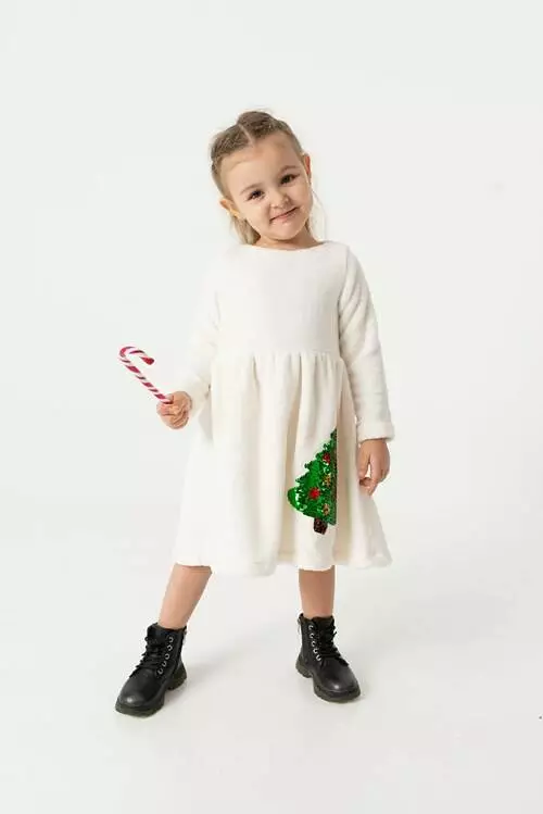 Тепла дитяча сукня з аплікацією з двосторонніх паєток.