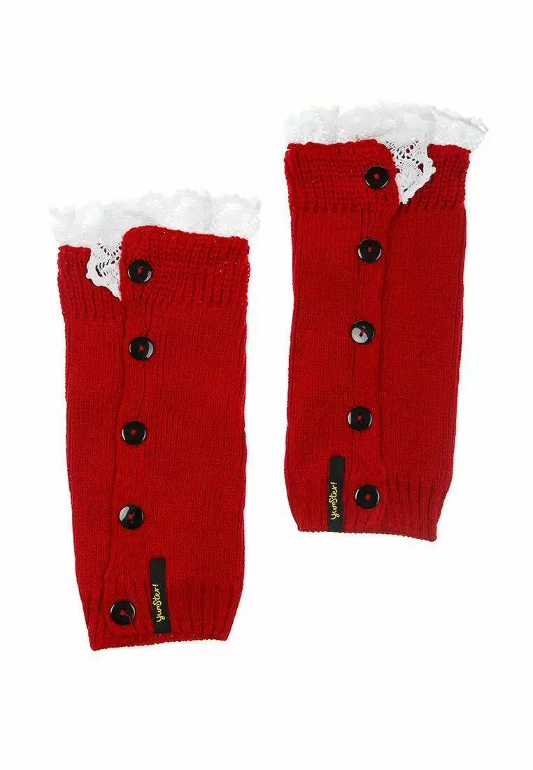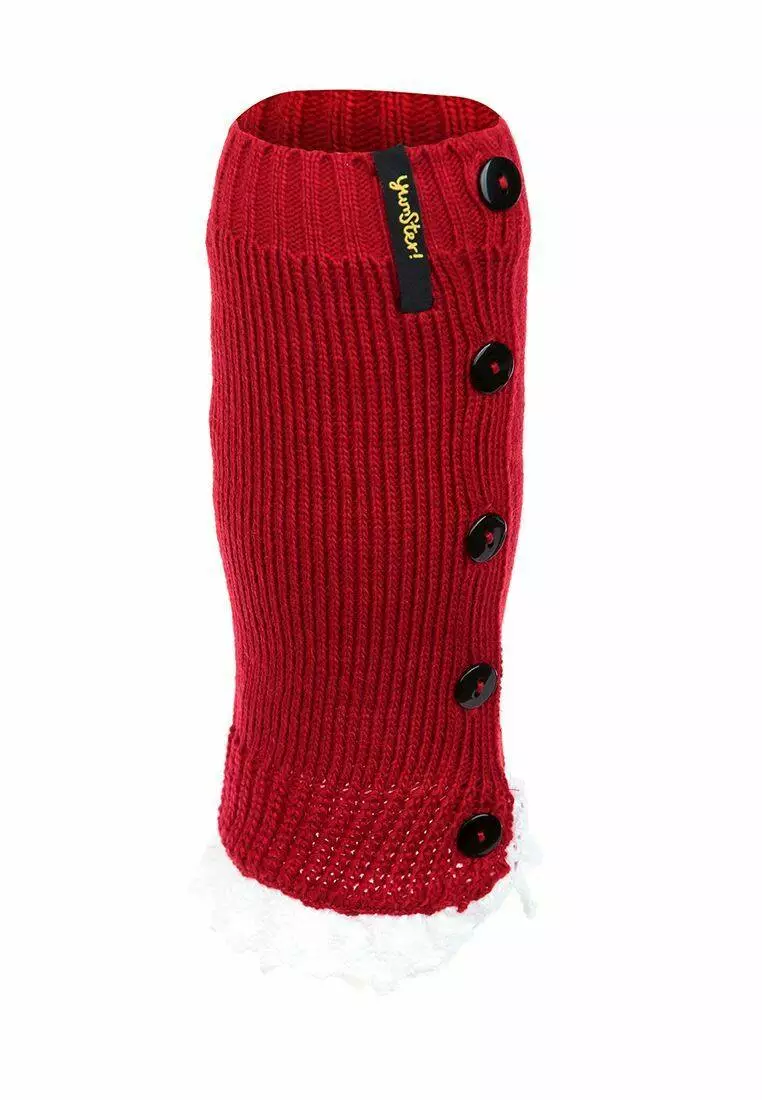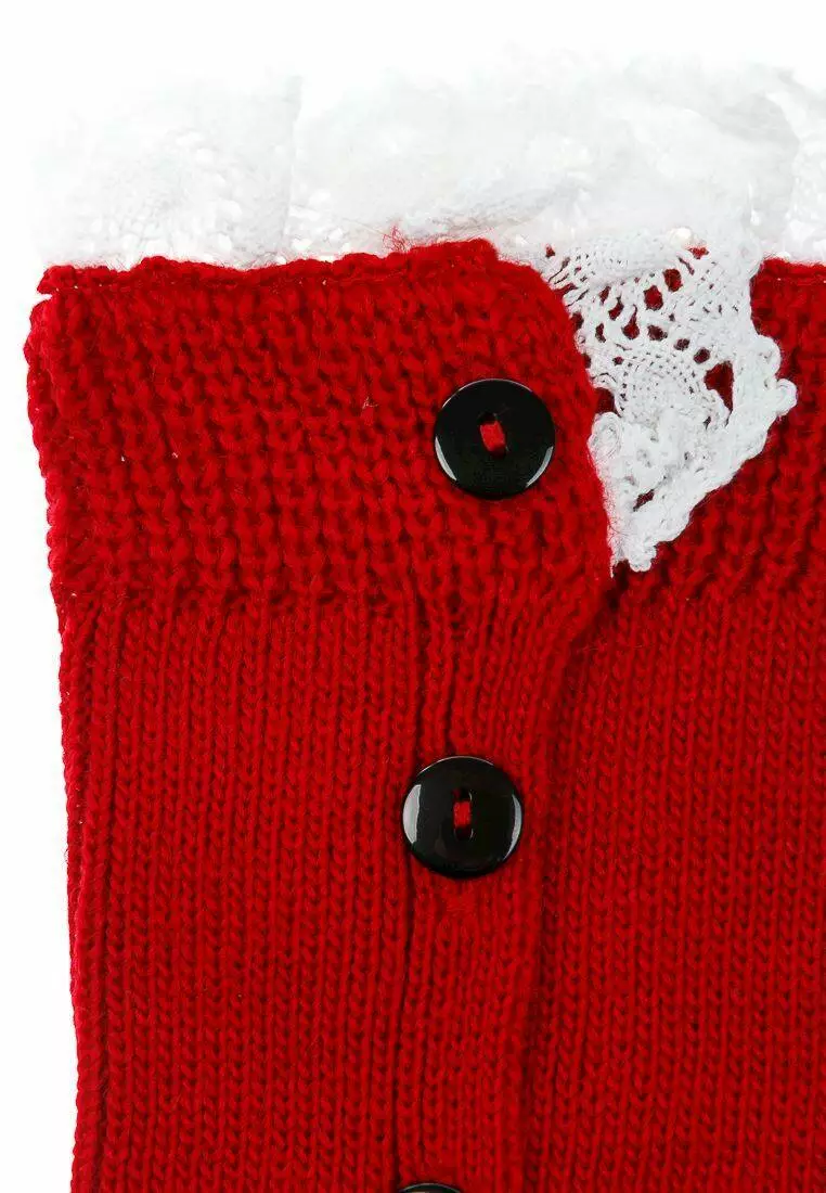 Деталі: Бордові гетри з рюшами білого