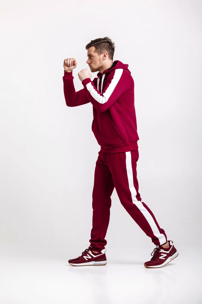 Теплый костюм с лампасами - бордовая худи с лампасами и бордовые штаны с лампасами / ОСЕНЬ-ЗИМА
