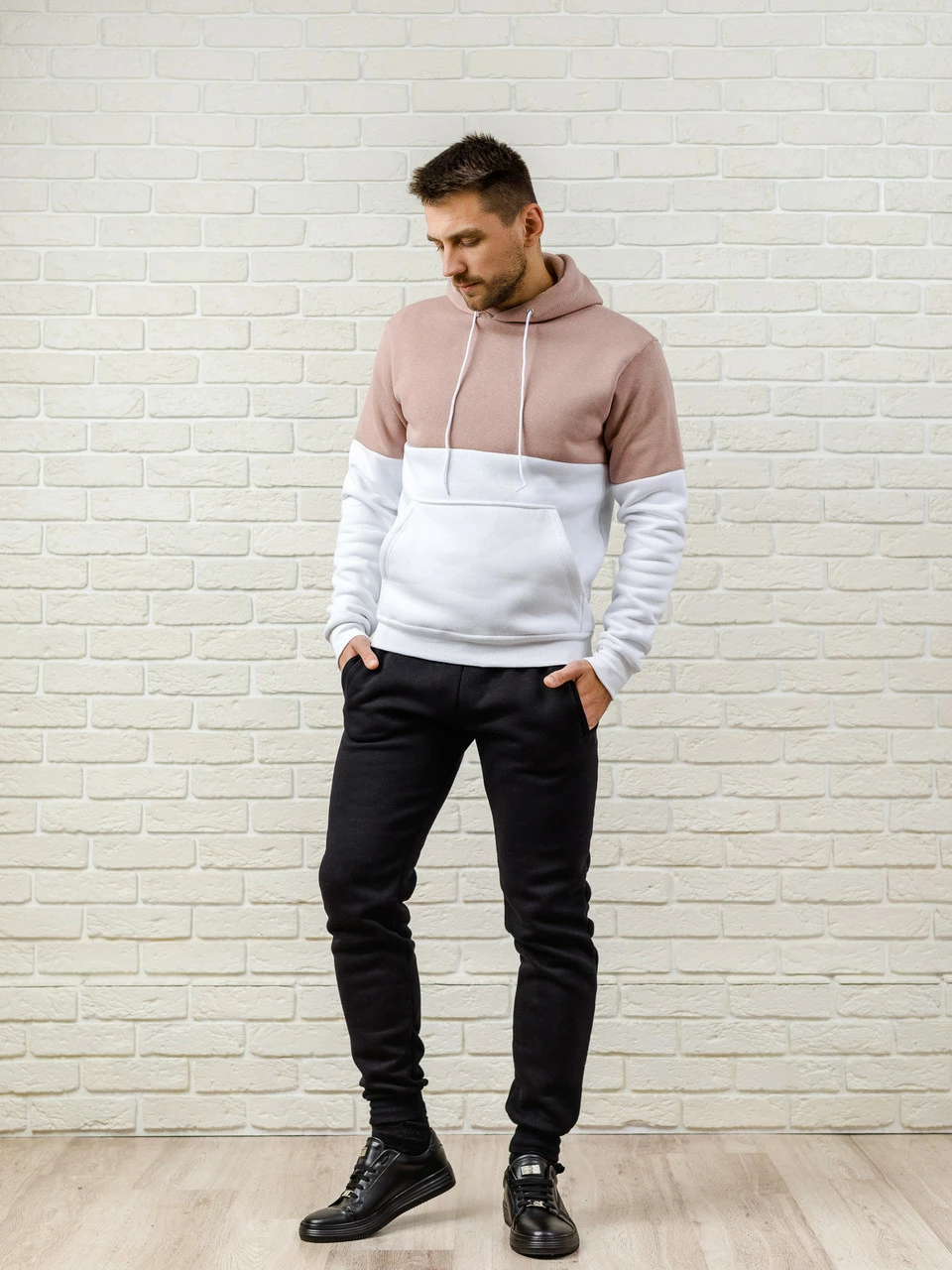 Теплый мужской спортивный костюм, яркая кофейно-белая худи и теплые спортивные штаны: черные/серые