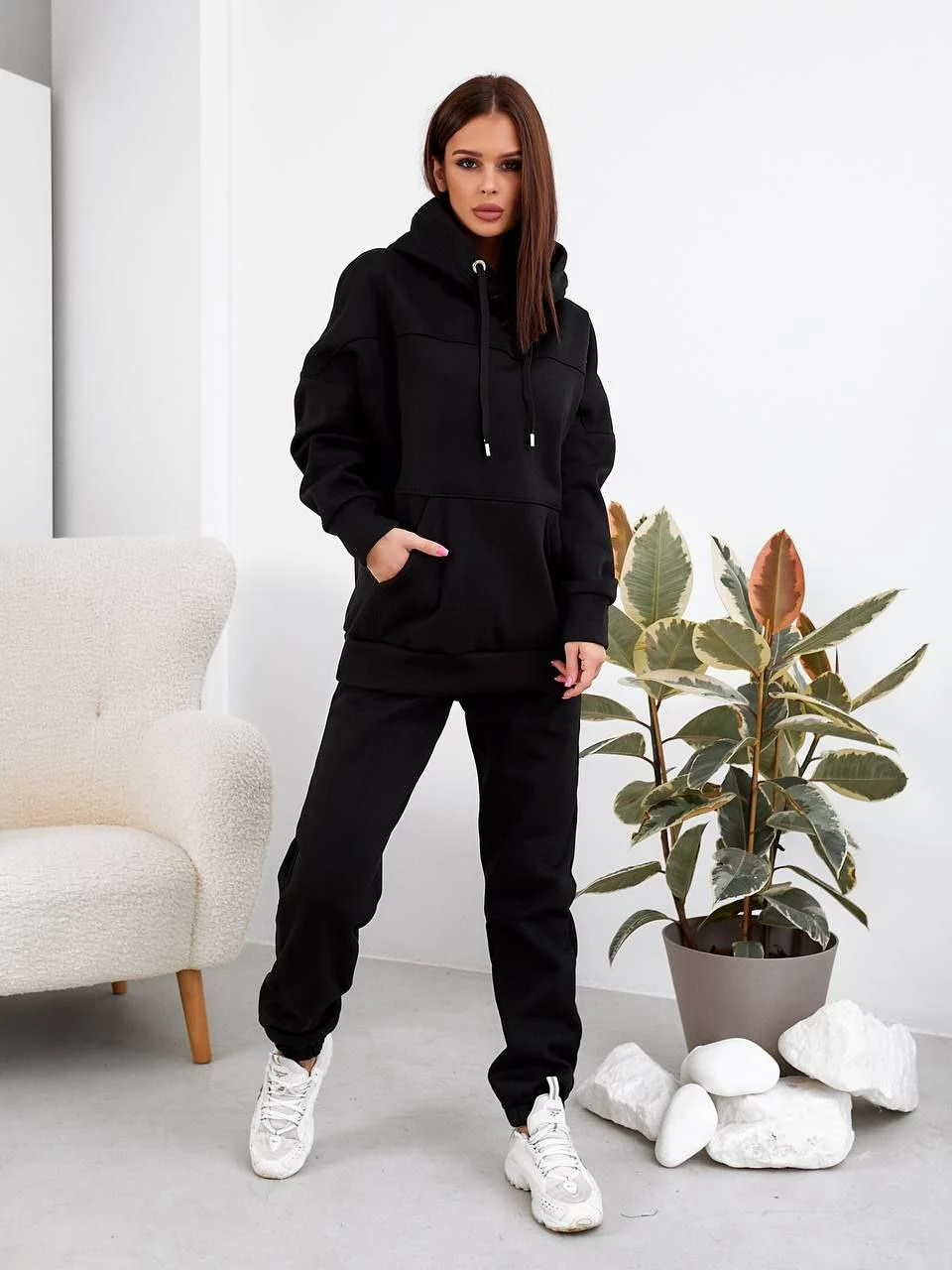 Теплий спортивний костюм чоного кольору