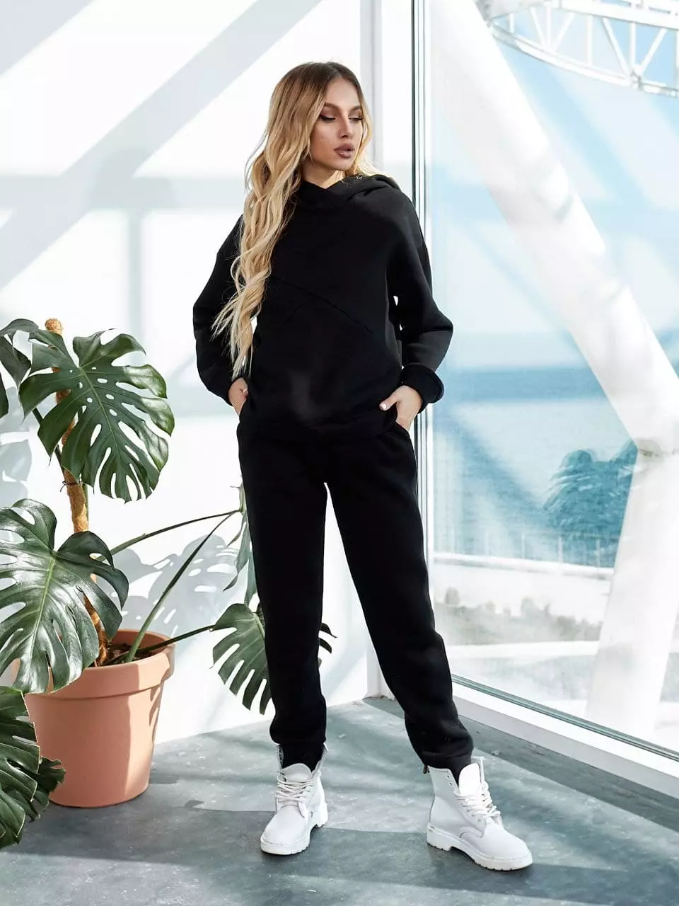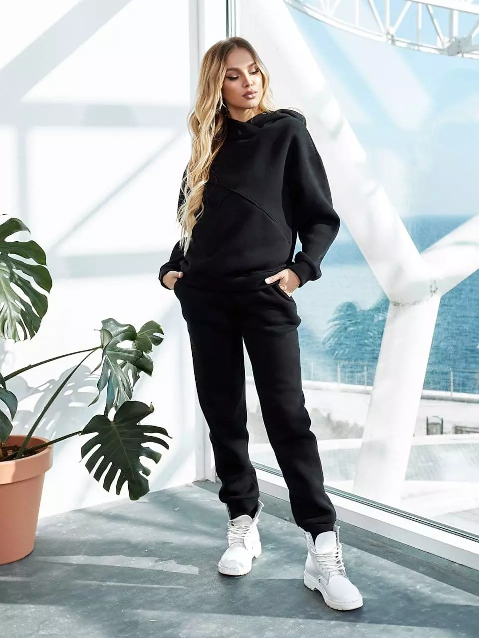 Теплий спортивний костюм чорного кольору