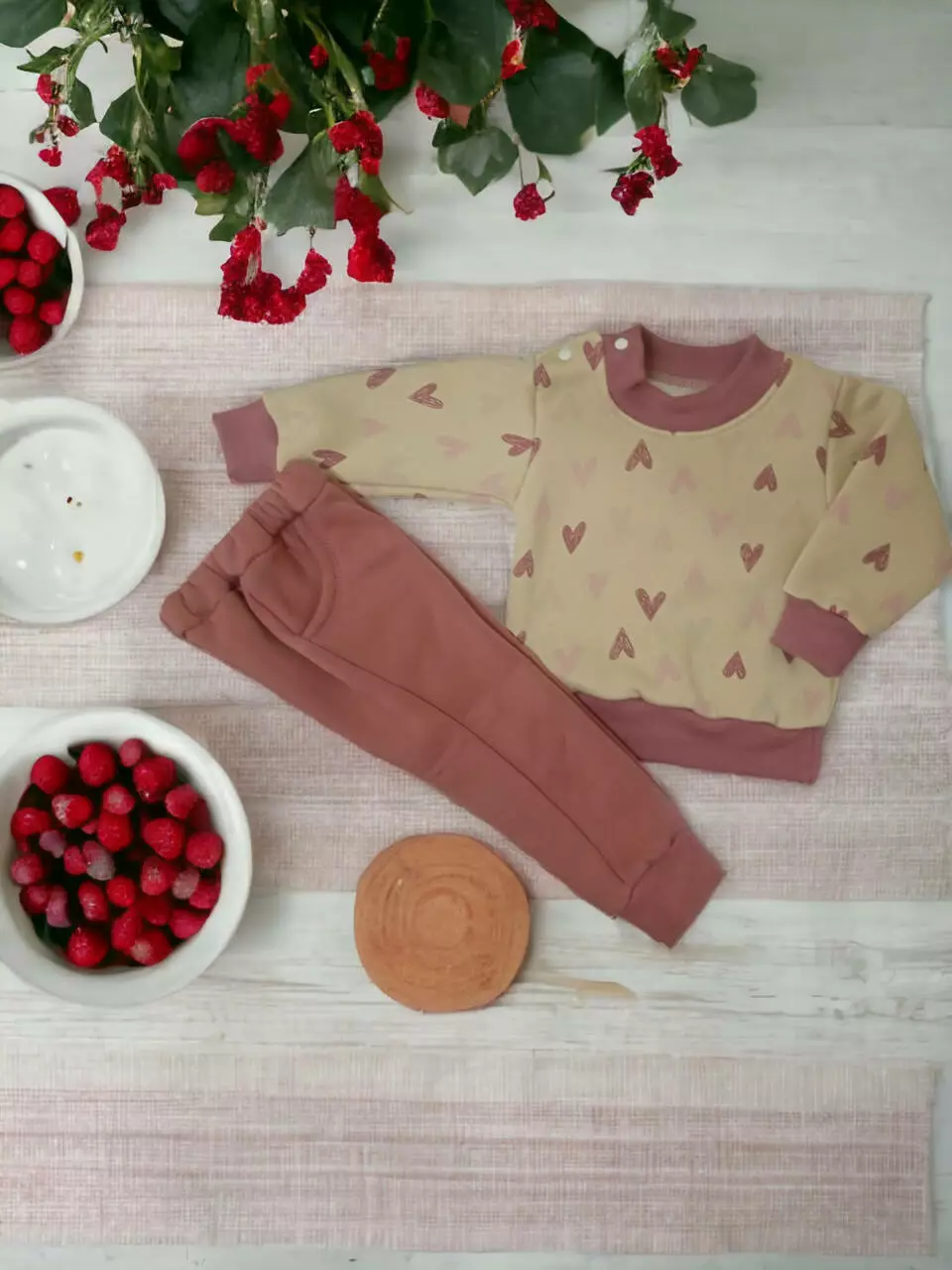 трикотажный манжет. Брюки имеют карманы, а по низу украшены