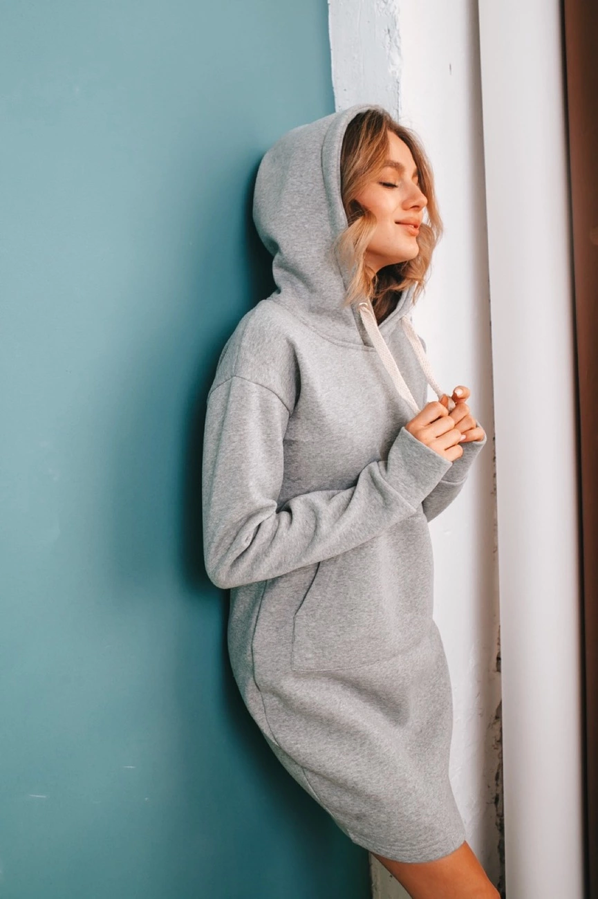 Теплое платье-худи