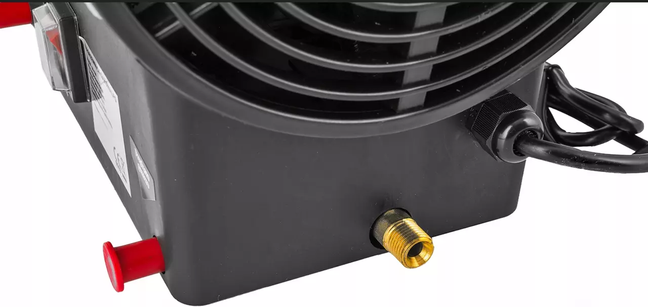 Продаваемый нами обогреватель поставляется со всеми необходимыми разъемами и редуктором, просто подключите его к баллону с пропаном/бутаном и источнику питания 230 В и сразу же нагрейте помещение.