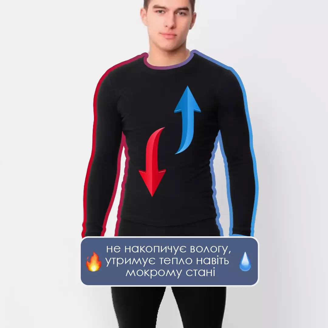 Комплект включает в себя термокофту с длинным реглан-рукавом и