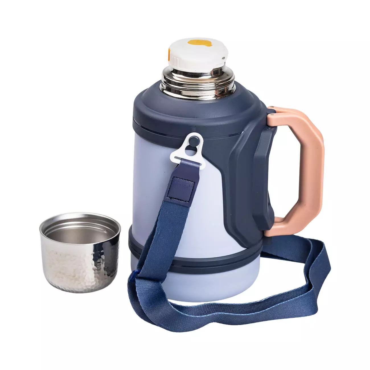 Термос для туризму Vacuum Cup 1,5 л з фліп кришкою та складаними ручками, темно-синій
