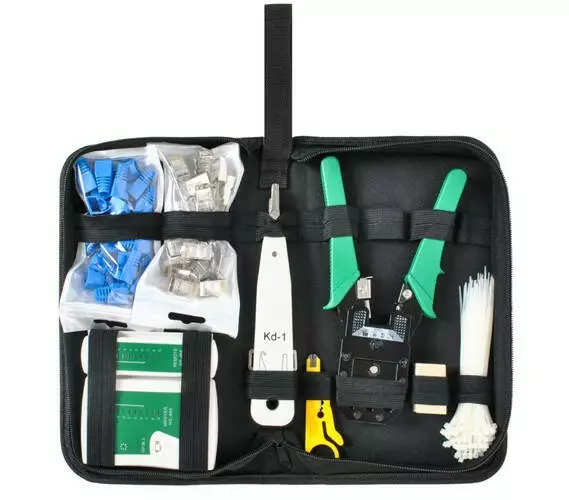 Мережевий комплект, упакований у практичний кейс, дозволяє зберігати всі необхідні інструменти в одному місці, що дозволяє підтримувати порядок, завдяки чому жодна необхідна деталь не загубиться, а будь-яка несправність буде усунена без проблем. Продукт переважно рекомендується монтажникам локальних, міських та глобальних мереж, студентам інформаційних технологій, а також для домашнього використання.