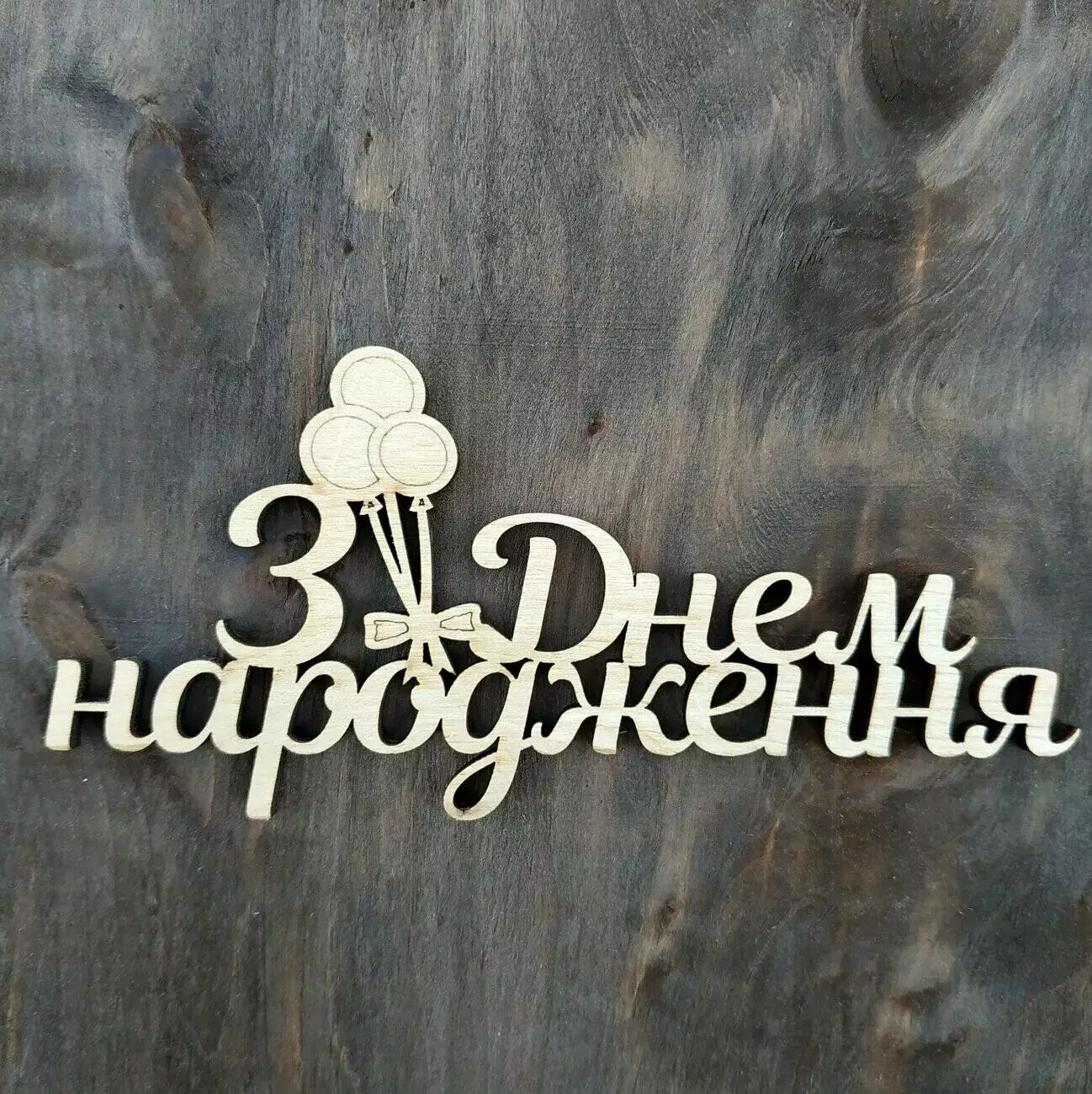 Топпер з дерева "З Днем народження (кульки)" 14,6*7 см