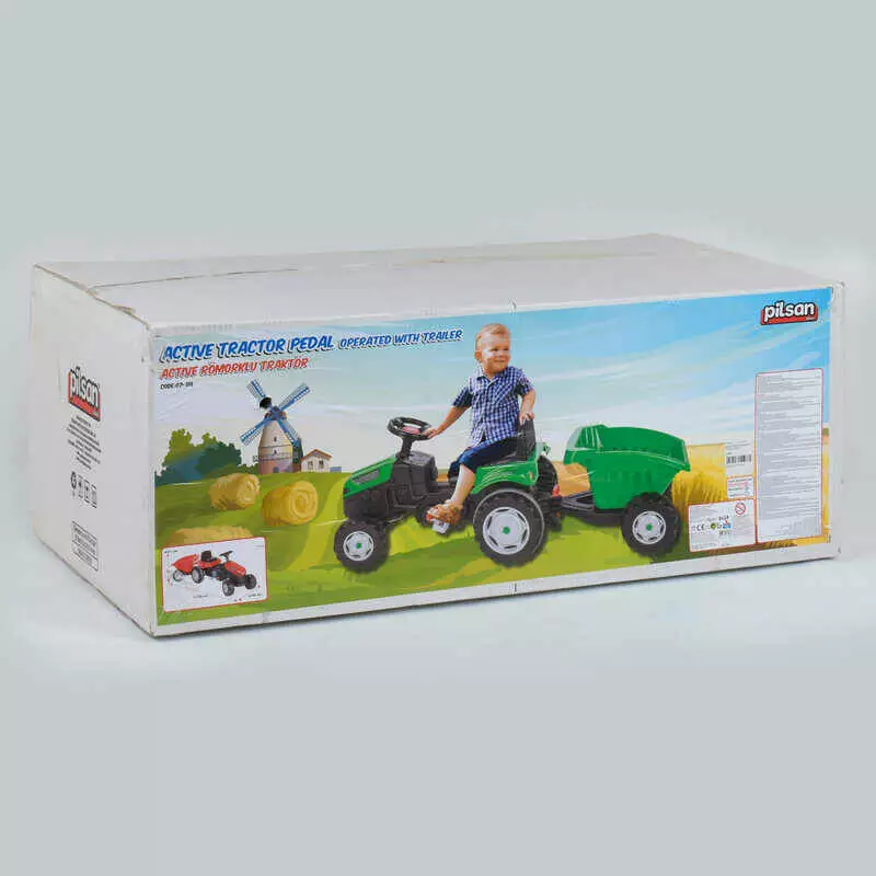 Трактор педальний з причепом Pilsan 07-316 RED (1) клаксон на кермі, сидіння регульоване, задні колеса з гумовими накладками, в коробці