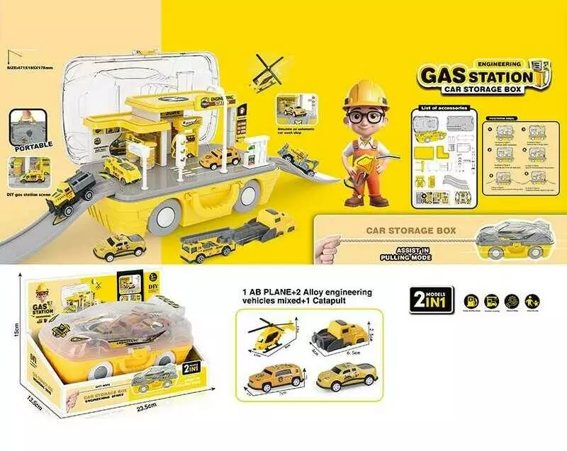 Трек 2809 (64/2) 2 металопластикові машинки, гелікоптер, запускач, в коробці