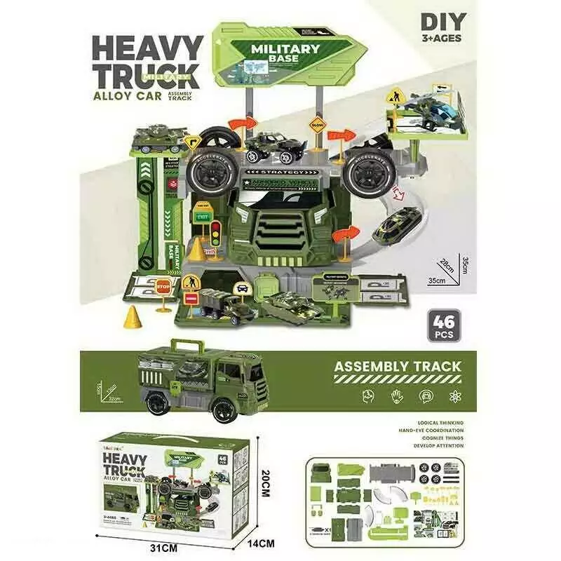 Трек 6663 (36/2) "Військова база", 2в1, вантажівка+трек, 46 елементів, металопластикова машинка, пластикові колеса, в коробці