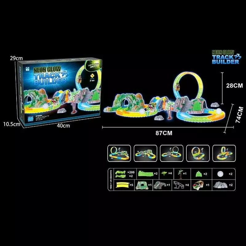Трек 777-134 (24/2) 200 деталей, машинка на батарейках, підсвічування, неоновий трек, в коробці