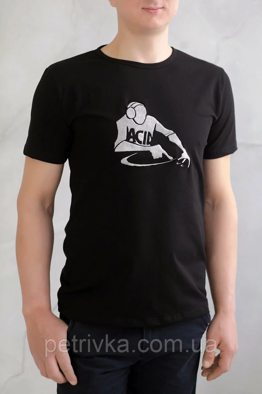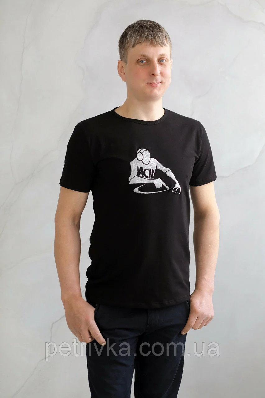 Чоловіча футболка чорна вишитим принтом Діджей, висока якість,