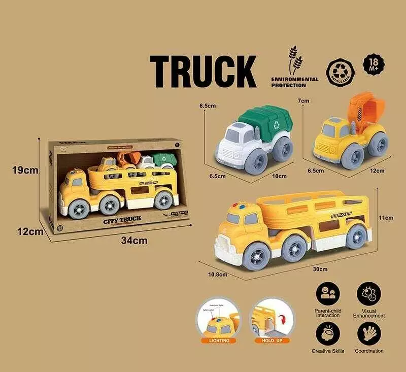 Трейлер 921-13 (36/2) підсвічування, кумедні звуки, мелодії, звуки транспорту, довжина 30 см, 2 спецтехніки, рухомі елементи, біопластик, в коробці