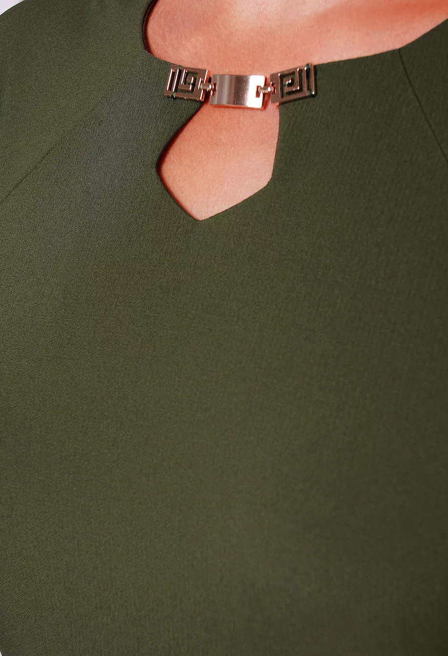 Платье полуприталенного силуэта, с цельнокроенным рукавом 3/4 с