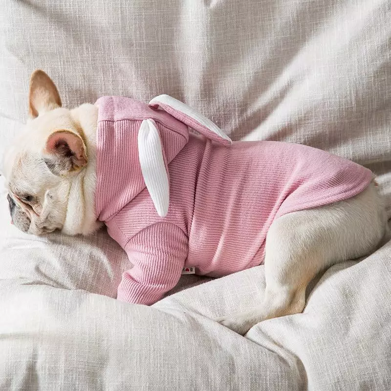 Трикотажна кофта Заєць RESTEQ рожевого кольору для собак, з довгим рукавом та капюшоном.