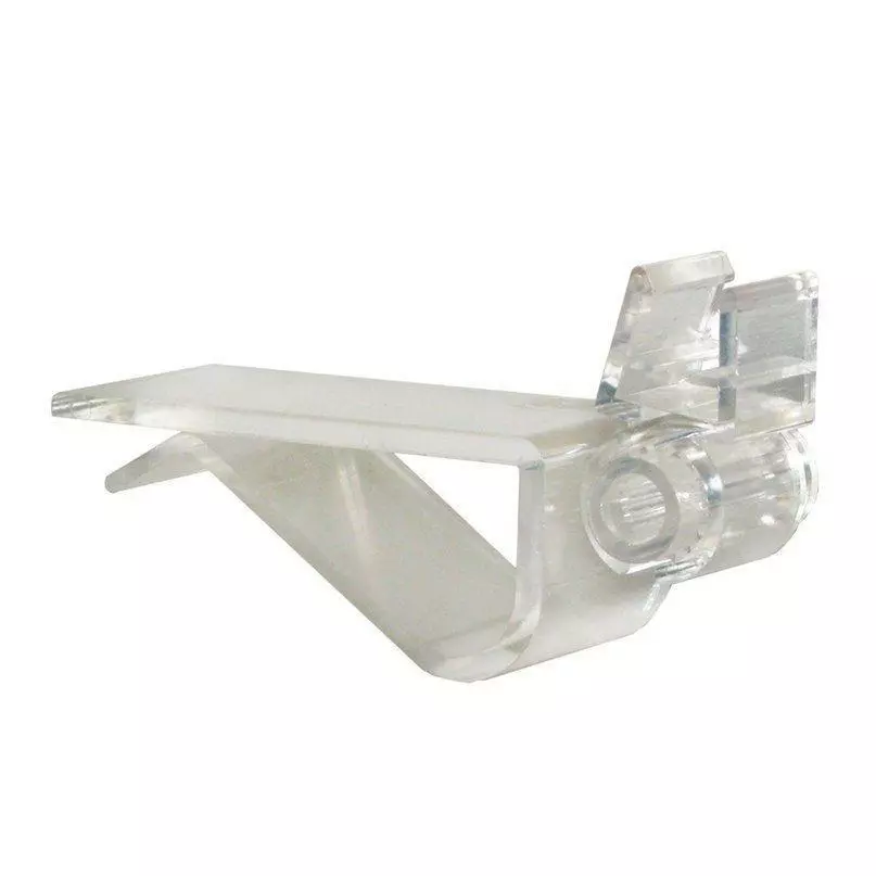 Тримач виготовлений з міцного акрилу, з допомогою спеціального затиску може кріпитися до полиці. Кут нахилу має можливість регултровки. Цінникотримачі є допоміжним, але не менш важливим обладнанням для торгового магазину.