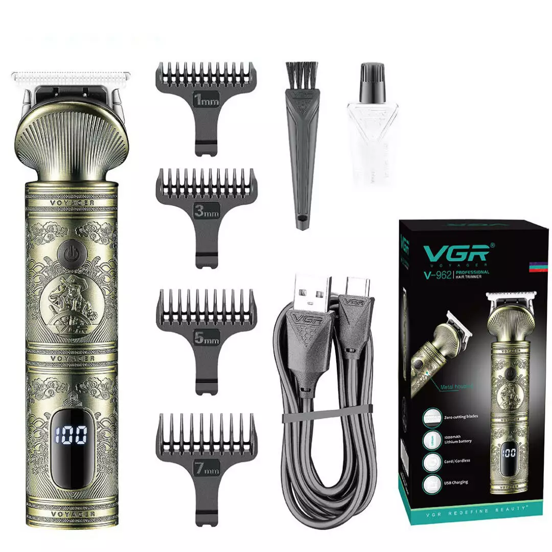 У комплекті передбачено чотири змінні насадки для різної довжини стрижки, а також щітка для сухого очищення знімного ножового блоку. Завдяки простій та ергономічній конструкції тример VGR V-962 підходить як для самостійного догляду, так і для використання у професійних цілях.