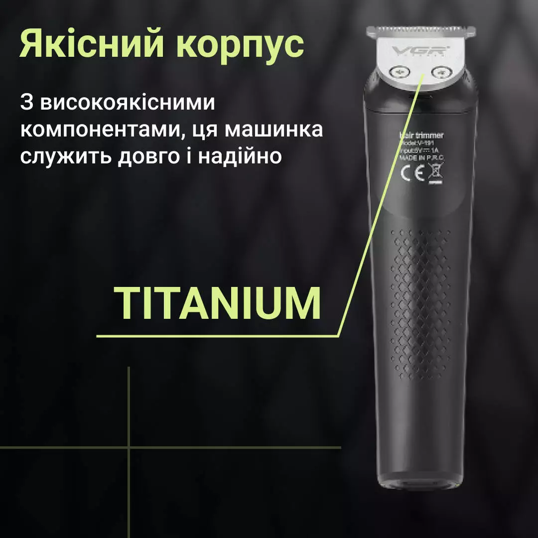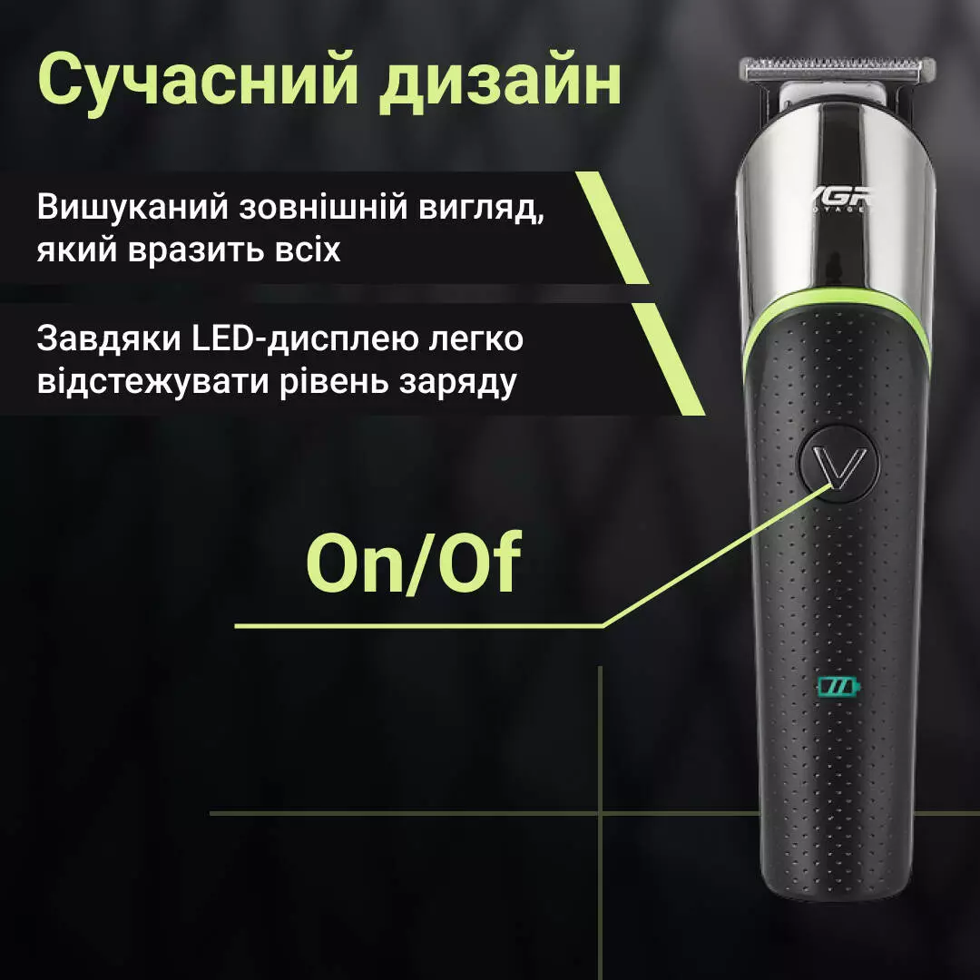 Тример для волосся та бороди VGR V-191 акумуляторний з насадками