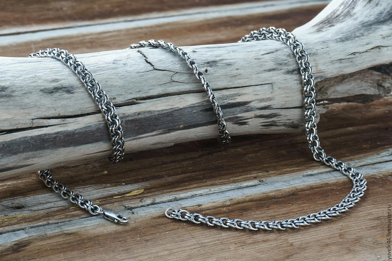 Серебряная цепочка с плетением бисмарк, длиной 50см. Если цепочки