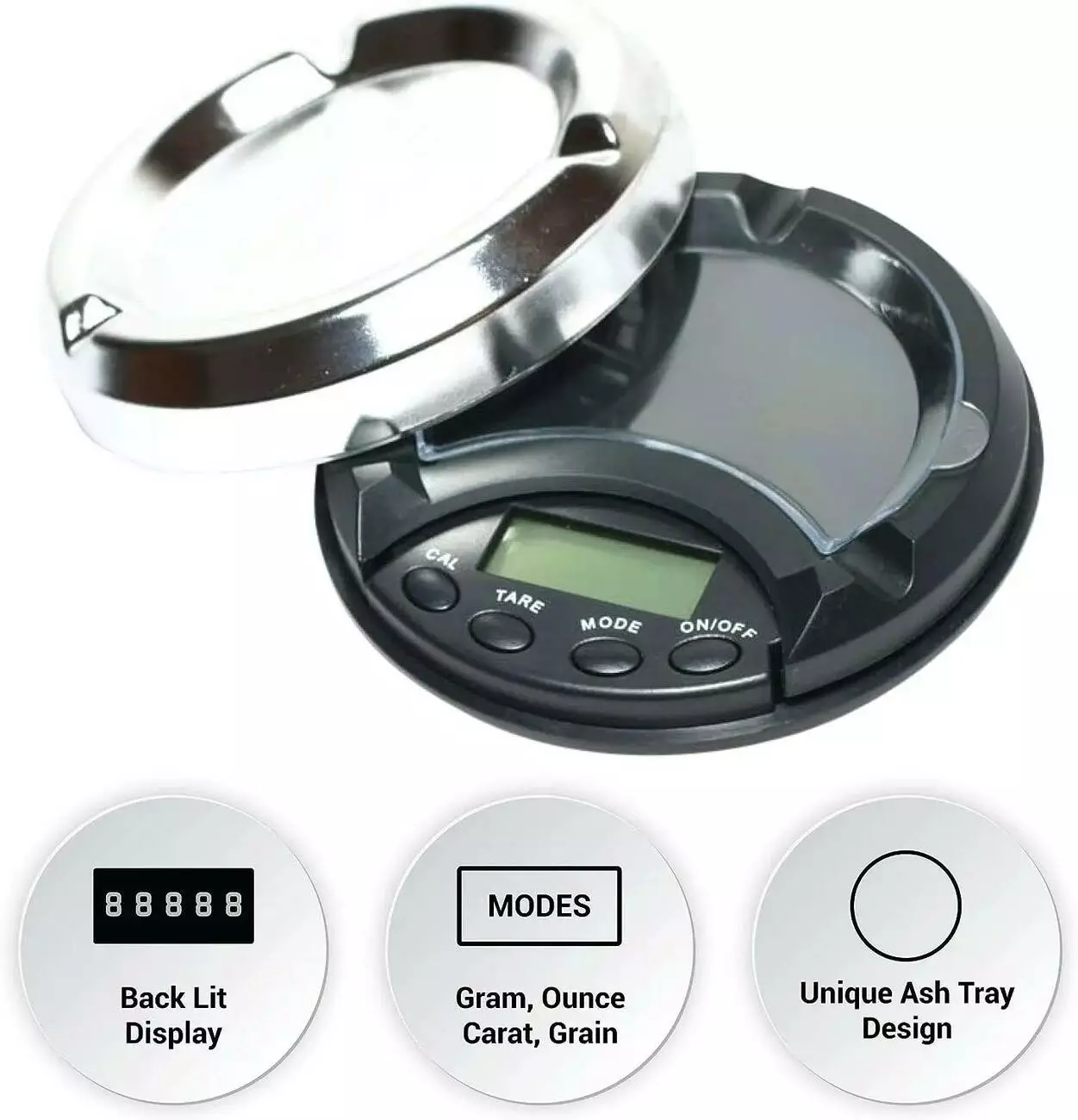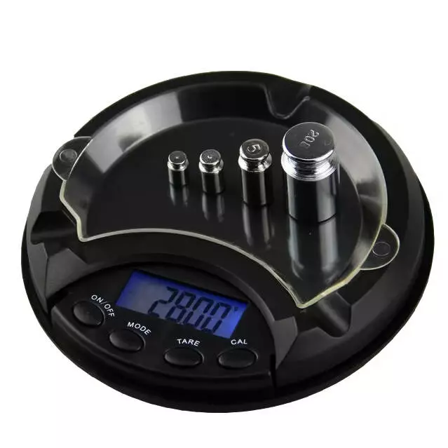 Цифровые весы оригинальной формы пепельницы — удобное и незаметное решение для взвешивания ювелирных изделий, мелких деталей, трав, порошков и других небольших предметов. Оснащены голубой подсветкой дисплея, функциями тары и защитой от перегрузки для точной и безопасной работы. Работают от двух батареек AAA, имеют автоматическое отключение при простое.