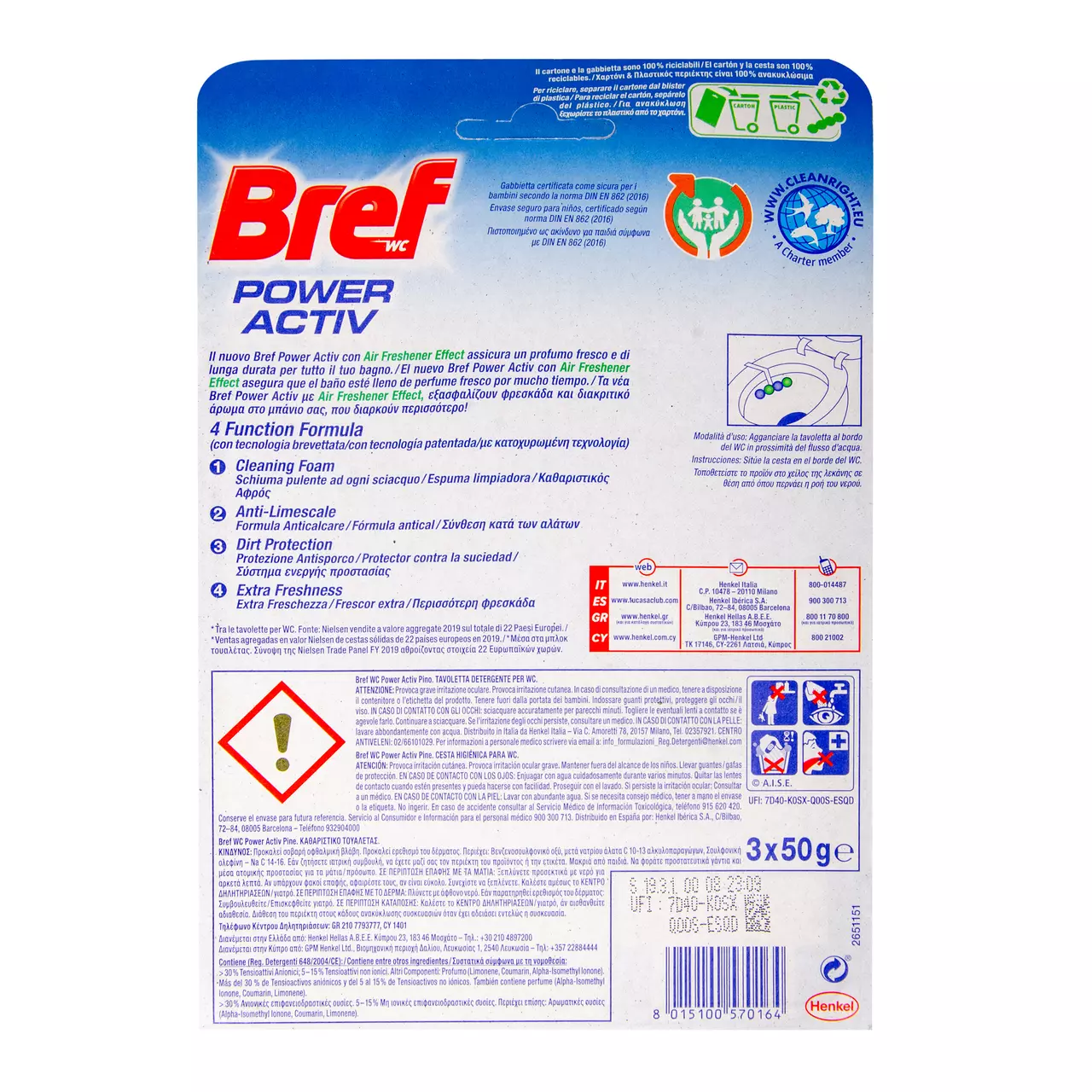 Туалетні блоки для унітазу Bref Power Aktiv Сосновий ліс 3×50 грам.