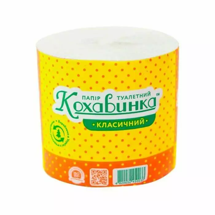 Туалетний папір «Кохавинка Classic» – це туалетний папір без втулки, виготовлений зі вторинної сировини з тисненням.