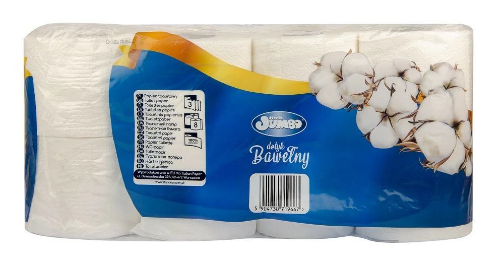 Тришаровий туалетний папір Slonik Jumbo Бавовна чудово підійде для