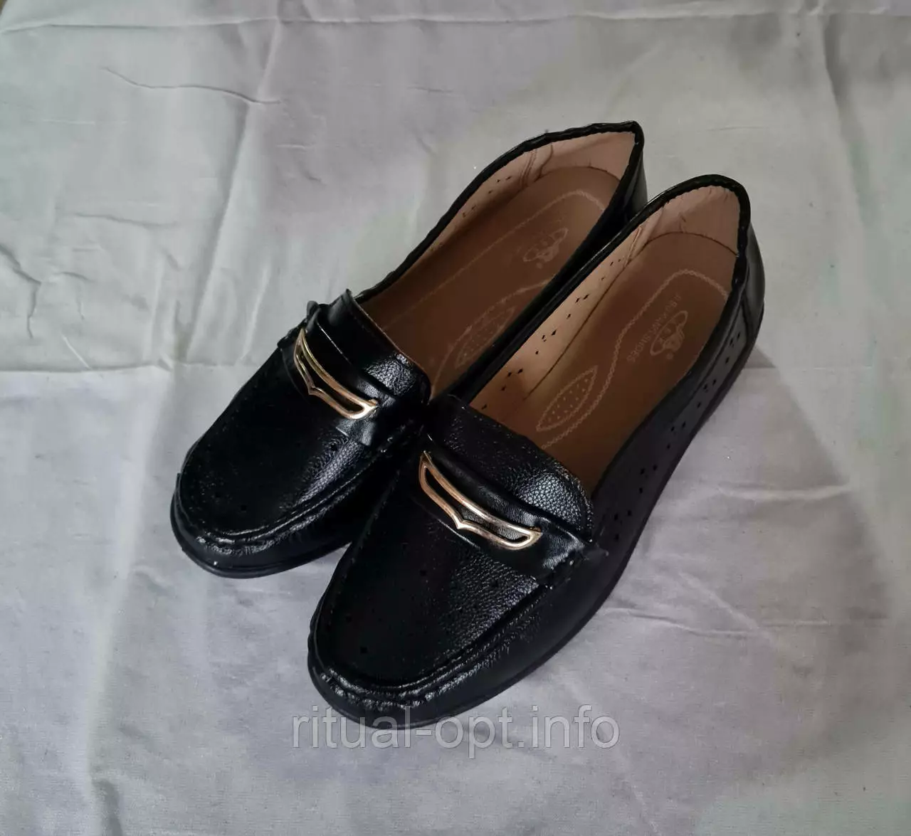 Туфлі жіночі.Матеріал шкірозамінник.Квіт чорний.Розмірний ряд 37-42.Продаємо ящиком із 6 пар. Хорстка якість.