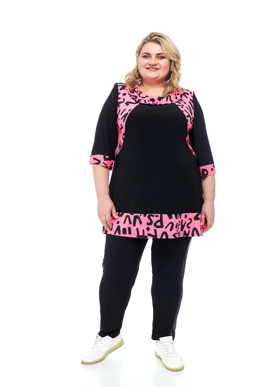 Тканина: масло - 70% поліестер; 20% віскоза; 10% еластан. Красива туніка з тканини масло. Рукав 3/4, відкладений круглий комір, бочка виробу подовжена. Тканина приємна на дотик, не вимагає особливого догляду. Має хорошу розтяжність, добре сідає на фігуру, не вигоряє, не меніться на довго зберігає свої якості. Догляд: делікатне прання, при прасуванні праску нагрівати не вище 110 градусів. Розміри :