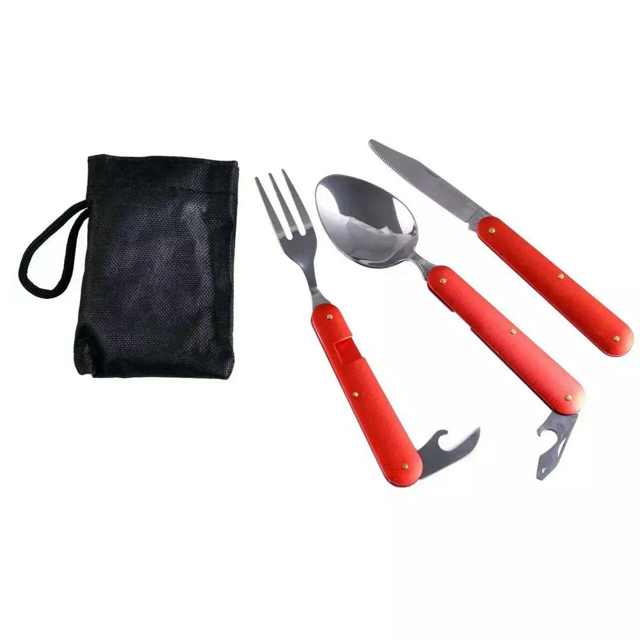 Туристичний набір 3 в 1 ложка, вилка, ніж K-8003 Black/Blue/Red/Grey