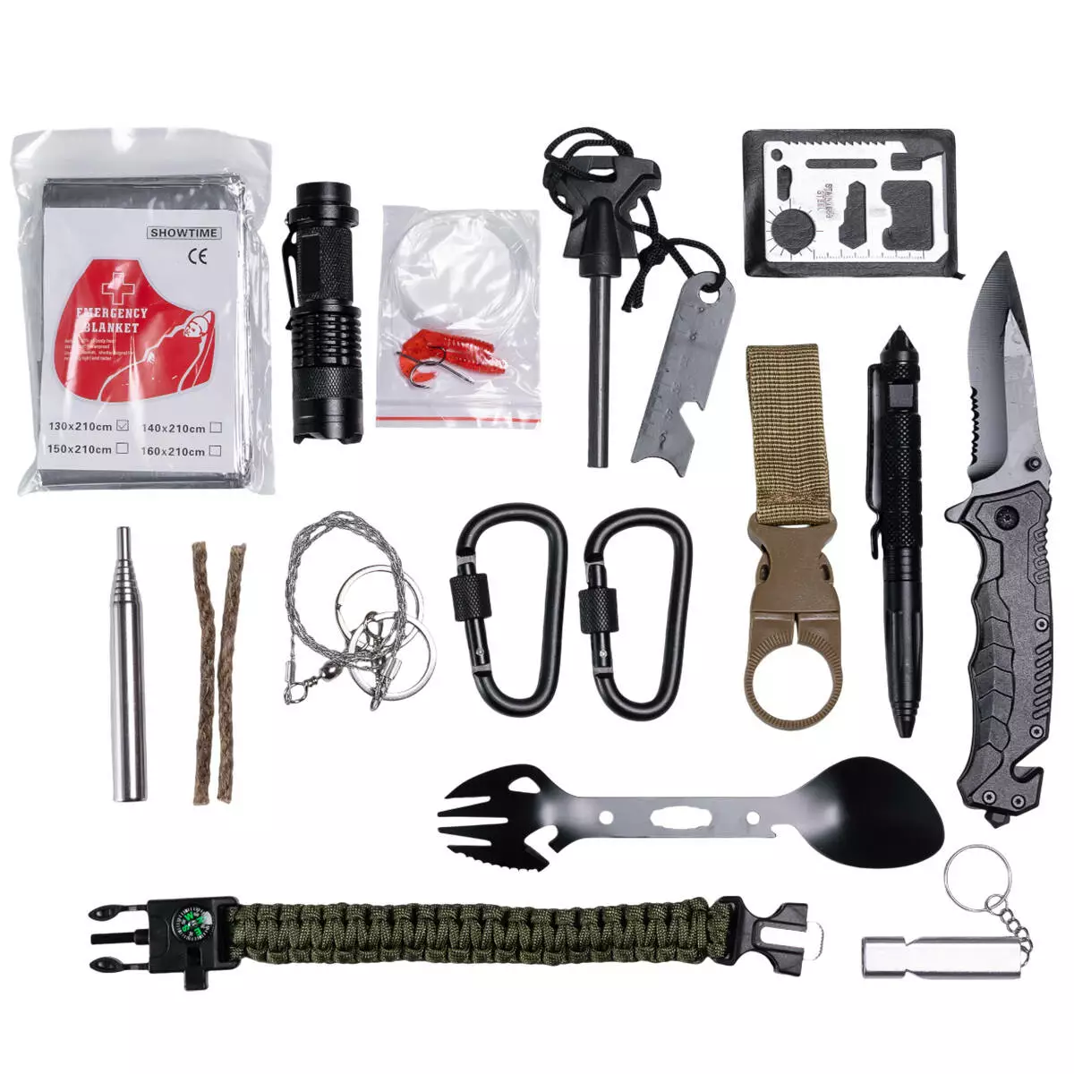 Туристичний набір інструментів для виживання з 16 предметів - чудовий вибір для любителів екстремального відпочинку та подорожей. Набір є базовим комплектом інструментів, які допоможуть у вирішенні повсякденних завдань, виконанні дрібного ремонту або допомоги в екстрених ситуаціях. Комплект упакований у міцний пластиковий водонепроникний кейс, який також можна використовувати для захисту від вологи документів, сірників або інших особистих речей.