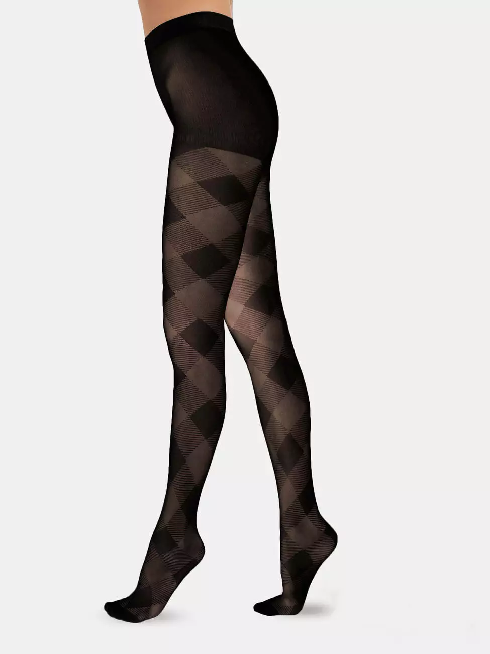 Жіночі колготки з візерунком у вигляді ромбів — стильний акцент для осінніх та зимових образів. Комфортний пояс забезпечує зручну посадку, а ущільнені шортики з бавовняною ластовицею додають комфорту. Ущільнений мисок підвищує зносостійкість. Оптимальна щільність 40 DEN дарує тепло та акуратний вигляд.