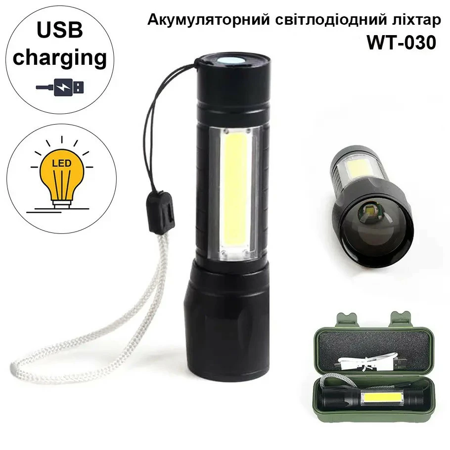 • Комплектація: ліхтар, зарядний кабель