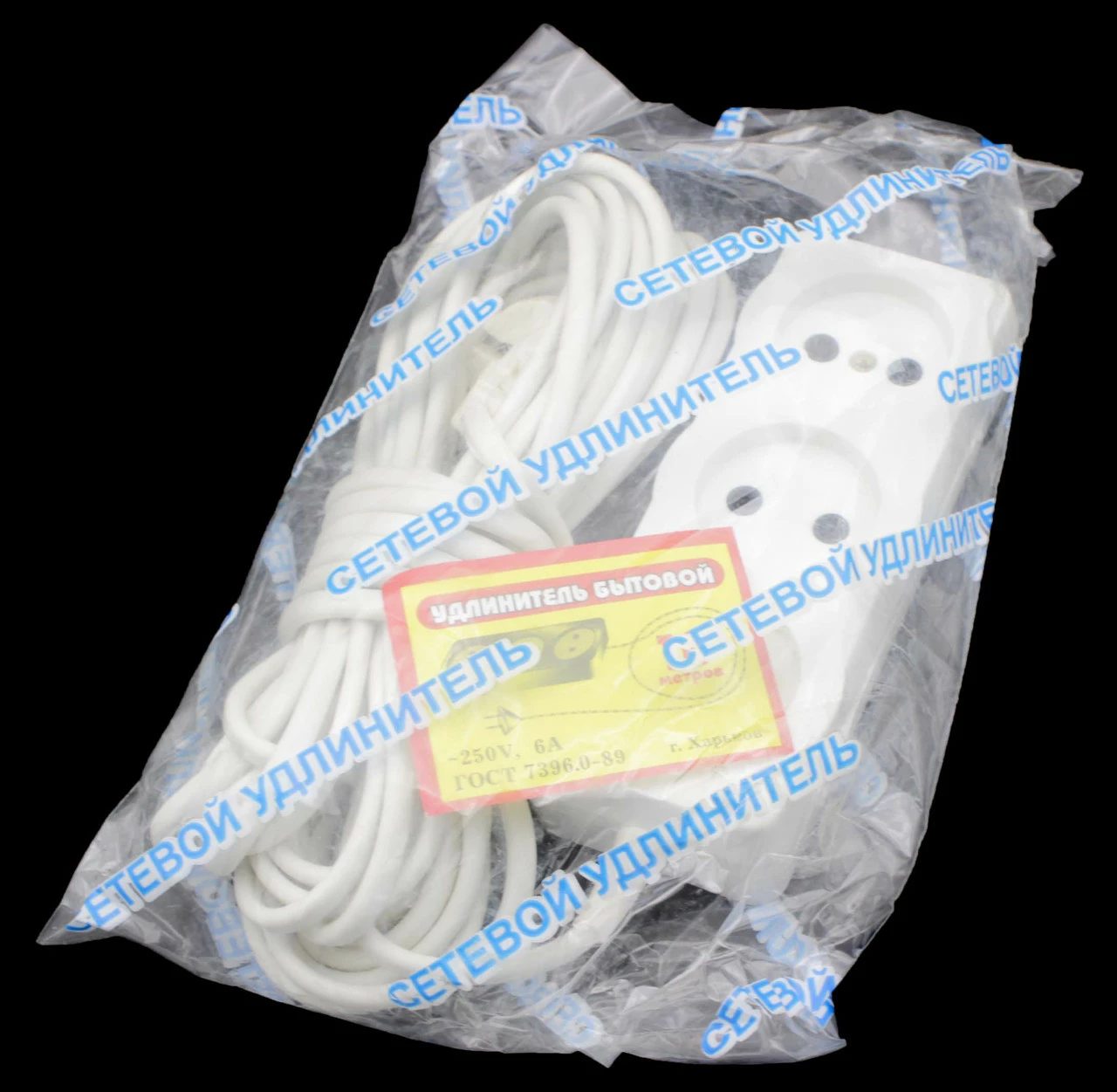 Удлинитель Харьковский длиной в 3м, с мощностью 6А.