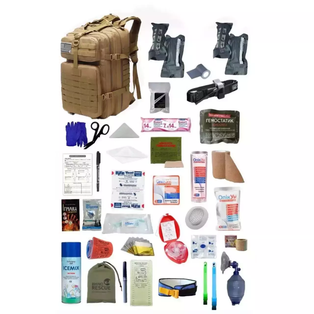 Укомплектований медичний тактичний рюкзак №1 (турнікет САТ) Койот