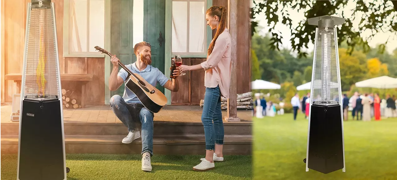 Они также незаменимы при проведении мероприятий на открытом воздухе или под садовыми тентами. Приборы работают на сжиженном газе в баллоне, который испускает безвредное инфракрасное излучение, воспринимаемое человеком как тепло.