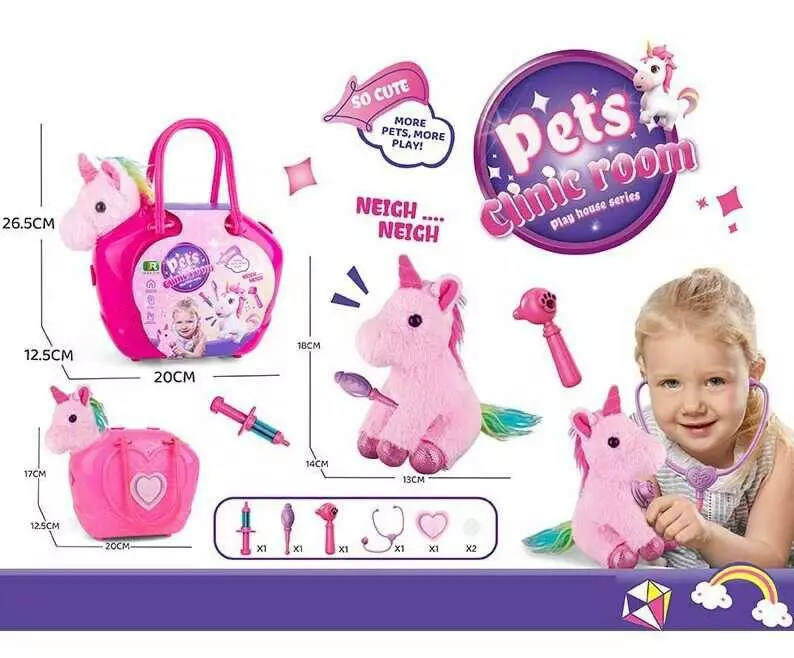 Улюбленець DR 5102 (48/2) “Єдиноріг”, м’яка іграшка, медичне приладдя, сумка-переноска, 7 аксесуарів, в сумці