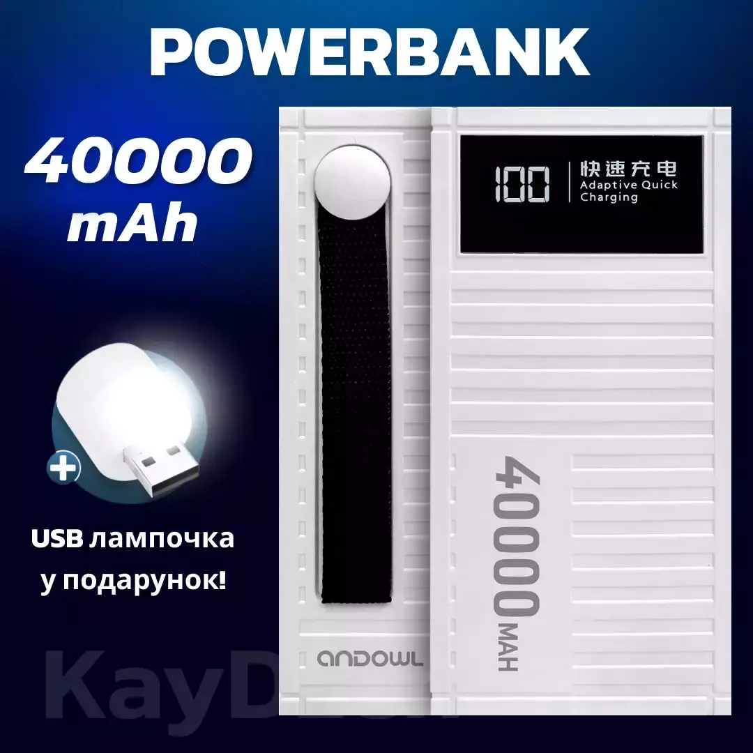 УМБ Andowl Q-CD4000 Power Bank 40000 mah Внешний аккумулятор с быстрой зарядкой QC3.0 PD30W Белый (повер банк,