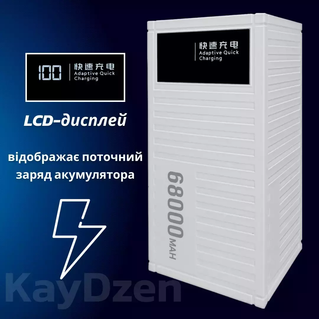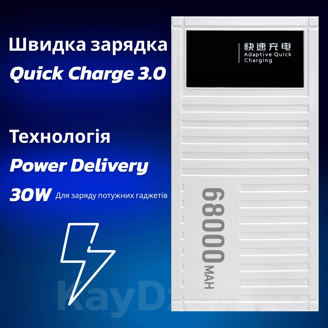 Andowl Q-CD6500 - это не просто павербанк, это верный союзник в мире быстрой и эффективной зарядки ваших устройств. Собранный с высоким качеством, он прочно стоит на страже вашей связности с цифровым миром. Емкий аккумулятор объемом 68000 mAh позволяет совершать множество подзарядок, не требуя постоянной подзарядки самого павербанка.