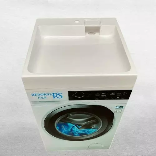 Підвісний умивальник над пральною машиною з литого акрилу посилений декількома шарами полімерних матеріалів і смол, має: