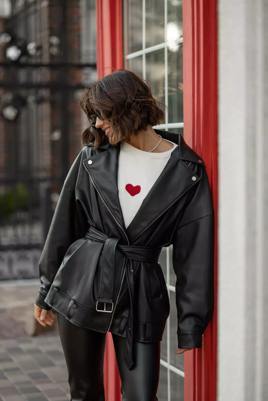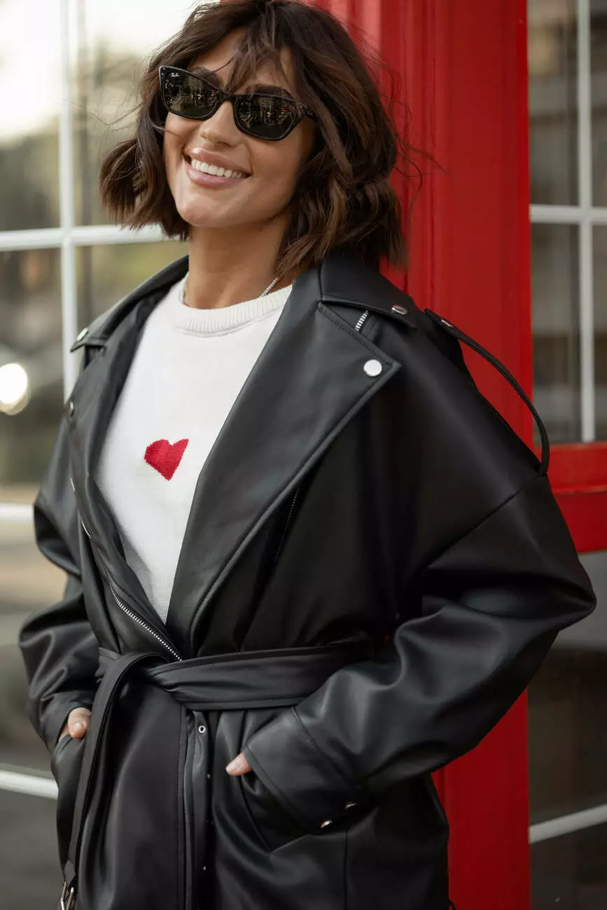 Універсальна куртка PILOT NEW (подовжена) з екошкіри оверсайз з ременем чорного кольору