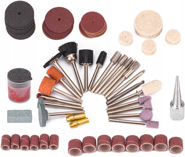 - Набор булавок, дисков, фетра, фрезы и наждачной бумаги