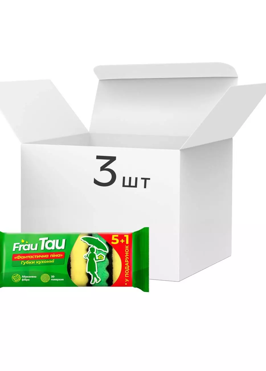 Кухонные губки Frau Tau Фантастическая пена изготовлены из поролона высокого качества и абразивной фибры, имеют 3D-поверхность и плотность поролона 22 мкг/см3.