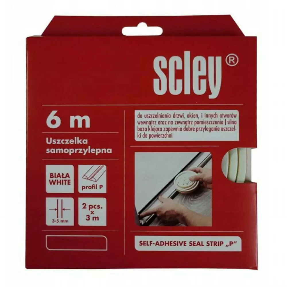 Уплотнитель самоклеящийся Scley для окон и дверей, профиль P, белый, 2 x 3 м